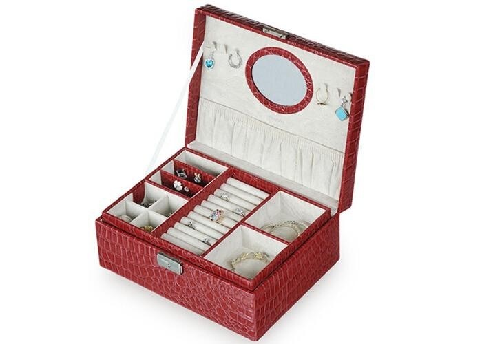 목걸이, 귀걸이를 위한 자물쇠를 가진 숙녀 Lycra 가죽 장방형 보석함